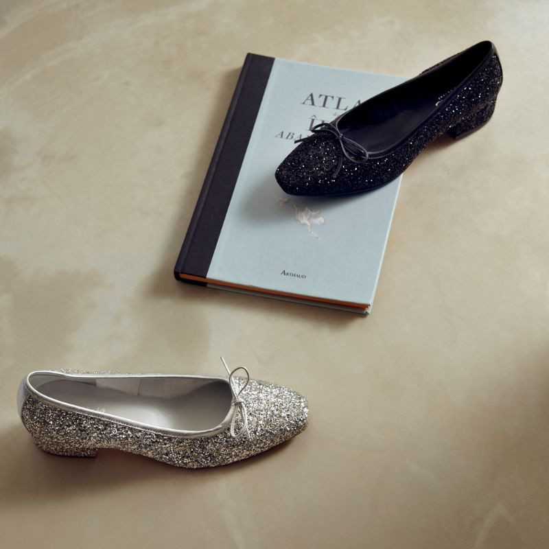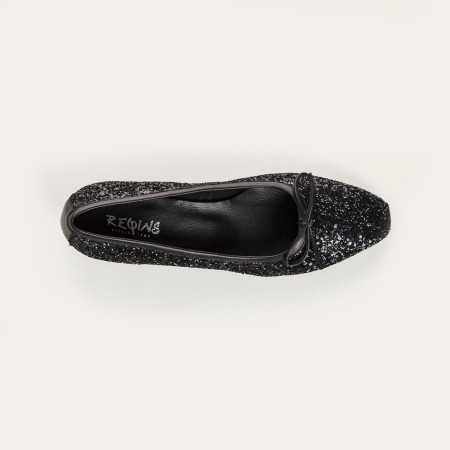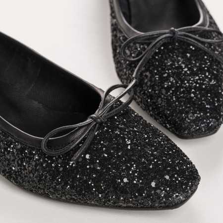 Les Fetiche Glitter Noir revisitent la ballerine classique dans une version brillante et élégante, idéale pour les fêtes ou illuminer le quotidien. En tissu pailleté noir, elles accrochent la lumière tout en restant sobres et féminines. Leur bout fin arrondi, leur nœud discret et leur talon carré de 3 cm allient charme intemporel, confort et stabilité. Parfaites avec robe, pantalon fluide ou jupe midi.