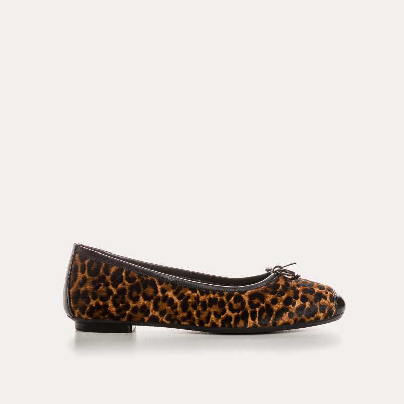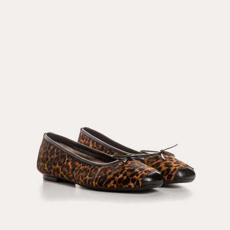 Les ballerines iconiques Harmony se déclinent dans une version sauvage à imprimé animalier, alliant élégance et confort. Confectionnées en cuir et ornées d’un nœud délicat, elles se distinguent par leur renfort en cuir velours ton sur ton qui structure la ligne. Plates et agréables à porter du matin au soir, elles s’associent aussi bien à un jean brut, une robe fluide ou un pantalon habillé.