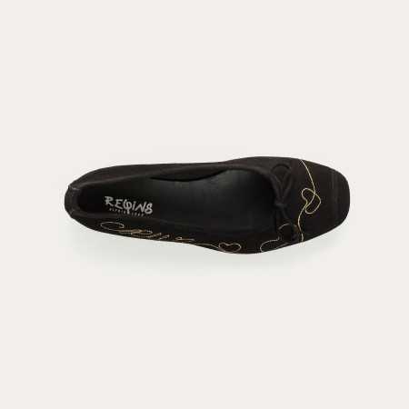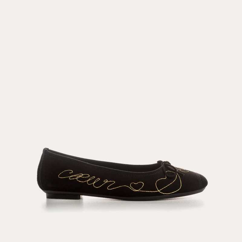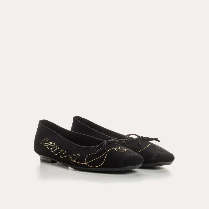 Délicates et féminines, les ballerines Heather en chèvre velours noir se distinguent par une broderie dorée qui illumine leur silhouette sobre d’un détail raffiné et précieux. Montées sur un talon plat, elles offrent confort et légèreté au quotidien. À associer avec pantalon habillé, robe fluide ou jean droit, elles ajoutent une touche élégante à toutes vos tenues, du matin au soir.