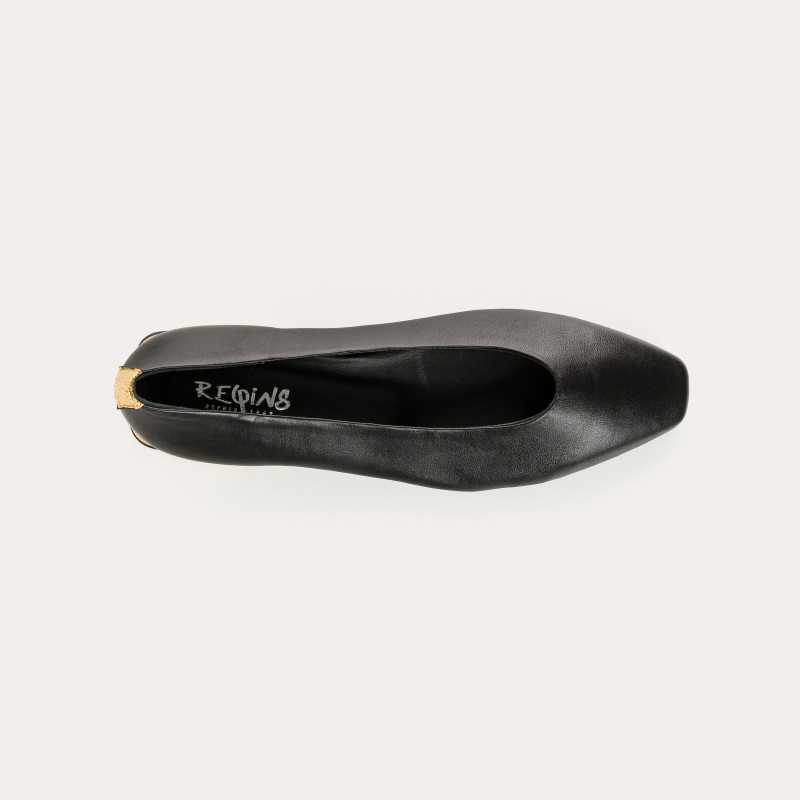 Chic et minimalistes, les ballerines Thea en cuir noir craquelé revisitent le classique avec modernité. Leur encolure en V, leur bout pointu et leur talon doré recouvert de cuir subliment la silhouette avec élégance. Confectionnées en cuir véritable avec un talon de 1 cm, elles offrent confort au quotidien. Parfaites avec jean ou robe fluide pour un style raffiné et facile à vivre.