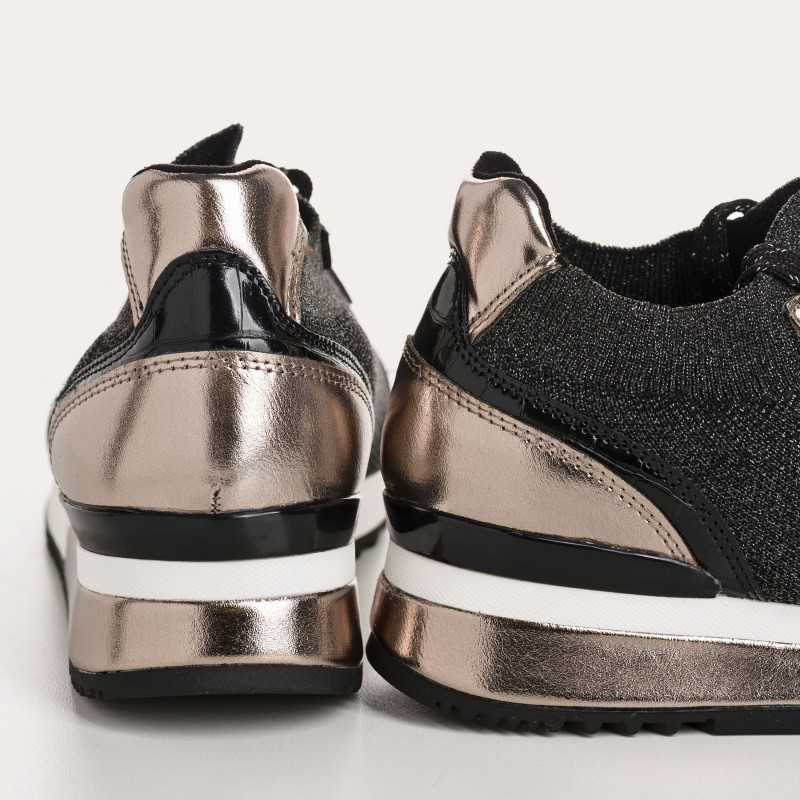Avec leur tige en crochet lamé et leurs finitions métalliques, les baskets Impulse apportent une touche moderne et lumineuse à vos looks du quotidien. Leur semelle en gomme et leur talon de 4 cm offrent confort et stabilité, pour une allure sportive et tendance qui s’associe facilement à un jean, un pantalon casual ou une tenue décontractée.