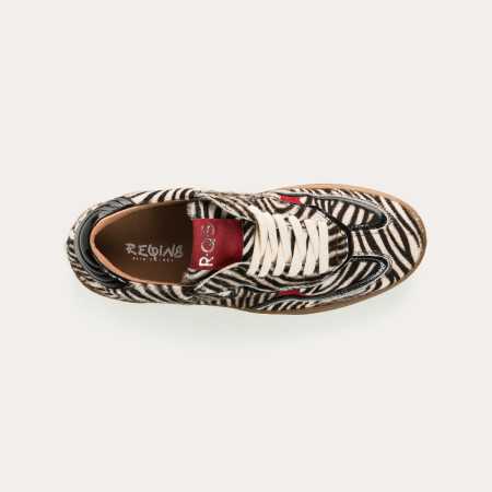 Les baskets Athena Mini Zèbre Blanc/Noir mêlent style urbain et détails graphiques. En cuir lisse avec doublure cuir, elles offrent confort premium et souplesse grâce à leur semelle en gomme. Leur imprimé zèbre apporte une touche sauvage et tendance. Avec leur talon de 2,5 cm, elles allient style et praticité, idéales avec jean, pantalon fluide ou robe casual.