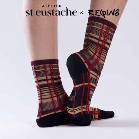 Nées de la collaboration entre Reqins et l’Atelier St Eustache, les chaussettes Nevada Roads Bordeaux allient style et confort. Avec leurs rayures raffinées dans les tons bordeaux, elles apportent une touche graphique à vos looks. Confectionnées en 95% polyamide et 5% polyester, elles sont douces, résistantes et idéales pour sublimer vos tenues au quotidien.