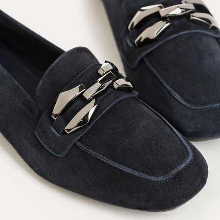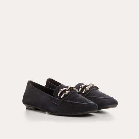 Élégants et brillants, les mocassins Hilarie en chèvre velours se distinguent par des boucles bijoux dorées qui contrastent avec la profondeur du velours, pour une allure chic et sophistiquée. Montés sur un talon plat discret, ils offrent confort et style au quotidien. À porter avec jean brut, jupe midi ou pantalon tailleur pour une silhouette féminine, sobre et lumineuse.